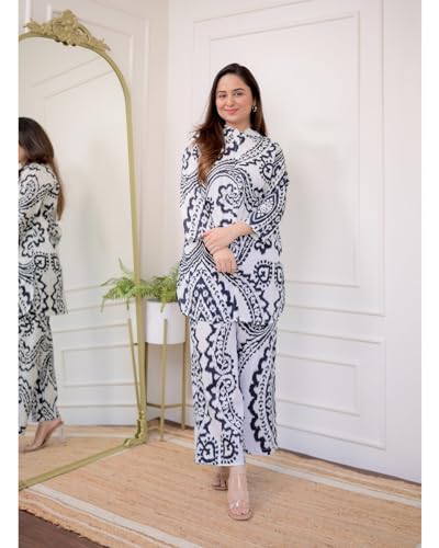Anni Designer Women'S Cotton Blend Printed Ethnic Co-Ord Set (Qurom White_S_White_Small),White,S,Cotton Blend,Regular,Kurta