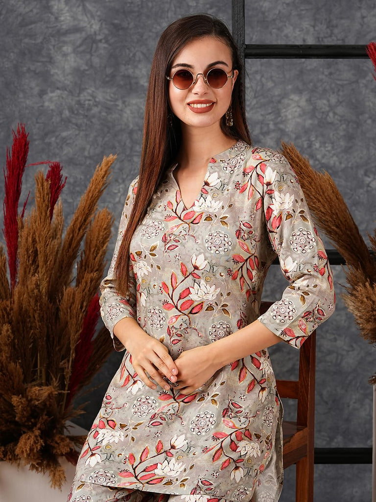 The set includes one kurta and one pair of trousers, designed to match in fabric and color.
