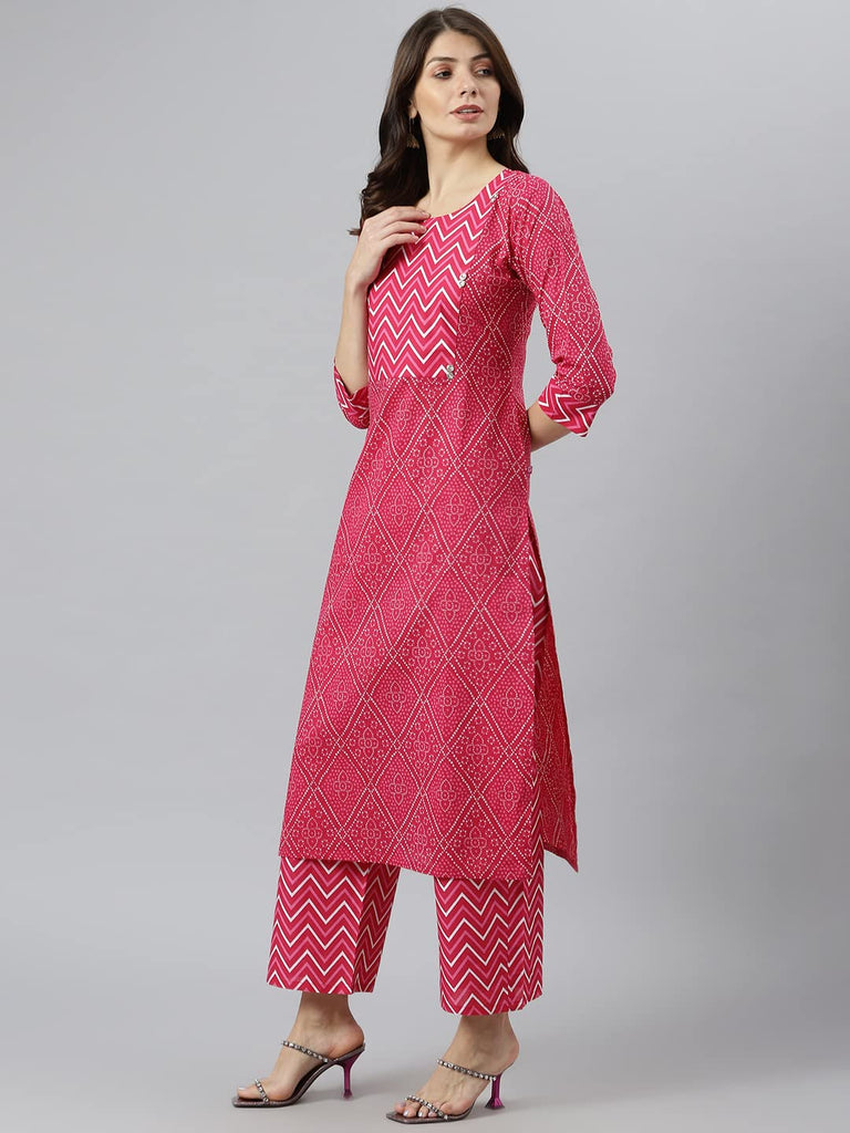 Anni Designer Women'S Cotton Blend Printed Straight Kurta With Palazzo (Pimpli) Pink,Pink,2XL,Cotton Blend,Straight,Kurta