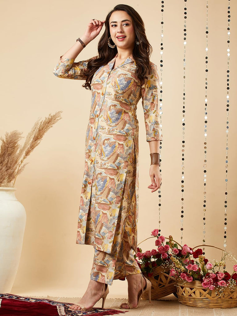 Descriptionanni Designer Women'S Cotton Blend Printed Straight Kurta With Palazzo Set (Half Blue_L_Blue_Large)