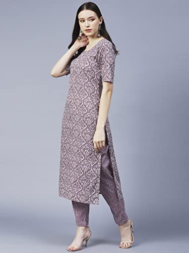 Anni Designer Women'S Cotton Blend Printed Straight Kurta With Pant (Batakli-Purple_Xxl_Purple_Xx-Large)