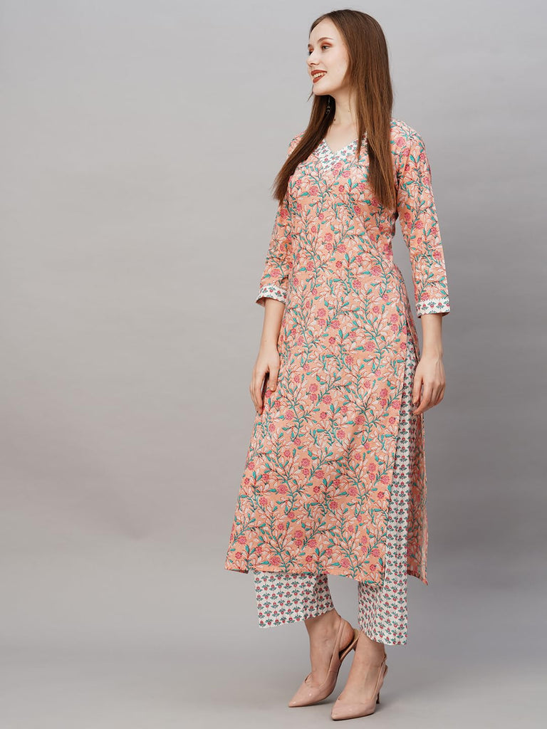 Descriptionanni Designer Women'S Cotton Blend Printed Straight Kurta With Pant (Cam Peach_3Xl_Peach_Xxx-Large)