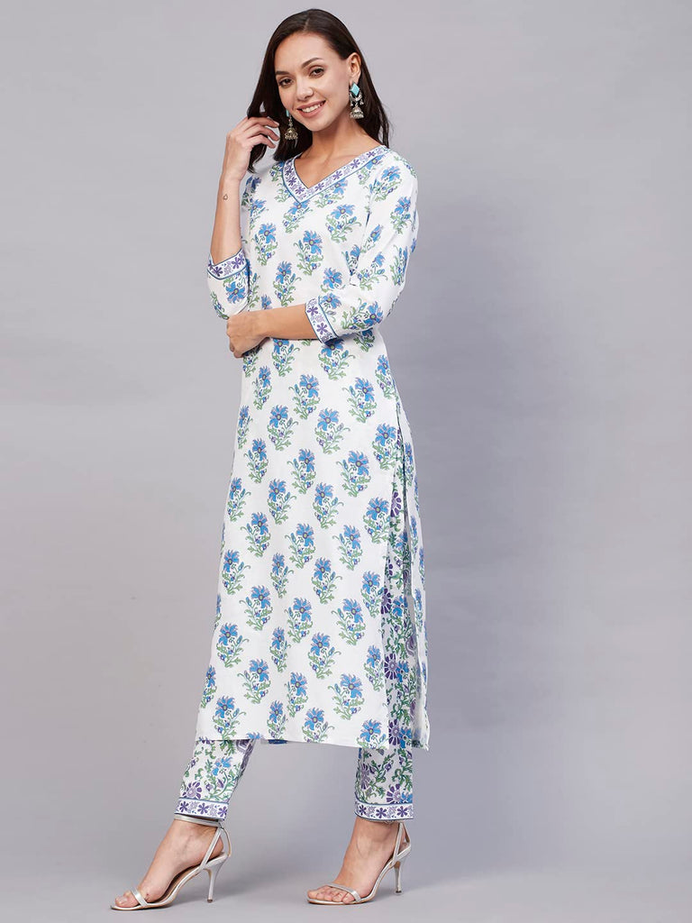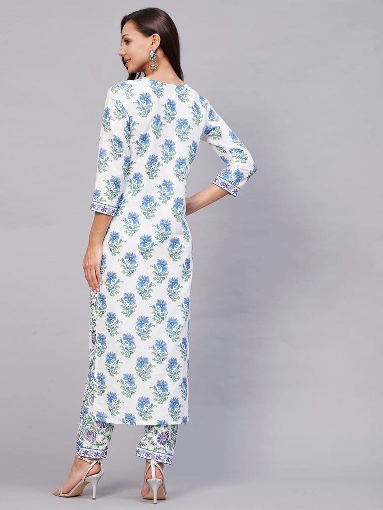 Descriptionanni Designer Women'S Cotton Blend Straight Printed Kurta With Pant Set (Tbh Blue_M_Blue_Medium)