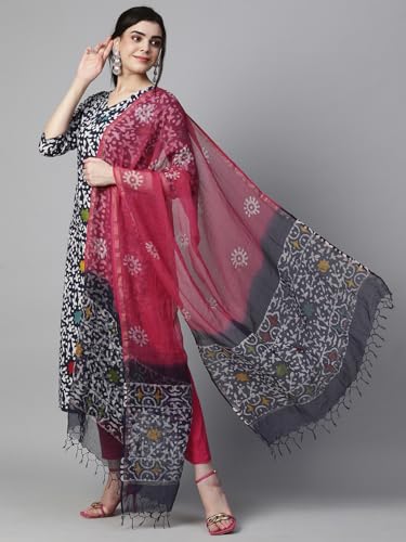 Anni Designer Women'S Cotton Blend Printed Straight Kurta With Pant & Dupatta (Khara Blue_L_Blue_Large),Blue,L,Cotton Blend,Regular,