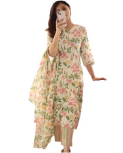 Anni Designer Women'S Cotton Blend Printed Straight Kurta With Pant & Dupatta (Kumud Cream_3Xl_Cream_Xxx-Large),Cream,3XL,Rayon Blend,Regular,