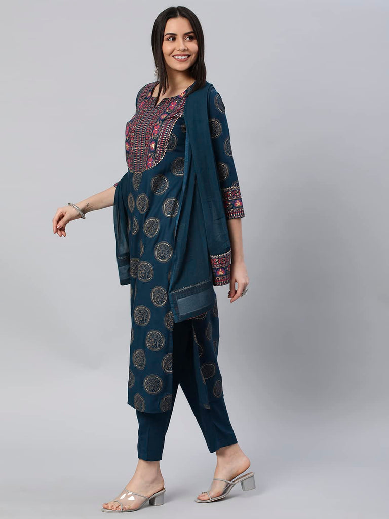 Descriptionanni Designer Women'S Cotton Blend Printed Straight Kurta With Pant & Dupatta (Nov-Rama-Nw_Xxl_Rama_Xx-Large)