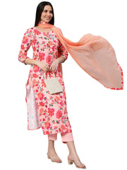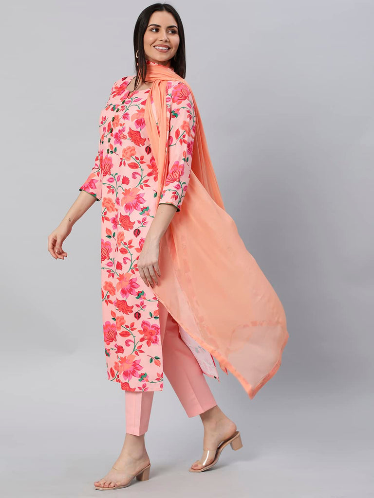 Anni Designer Women'S Cotton Blend Printed Straight Kurta With Pant & Dupatta (Water-Peach_Xxl_Peach_Xx-Large),Peach,2XL,Cotton Blend,Regular,Dupatta