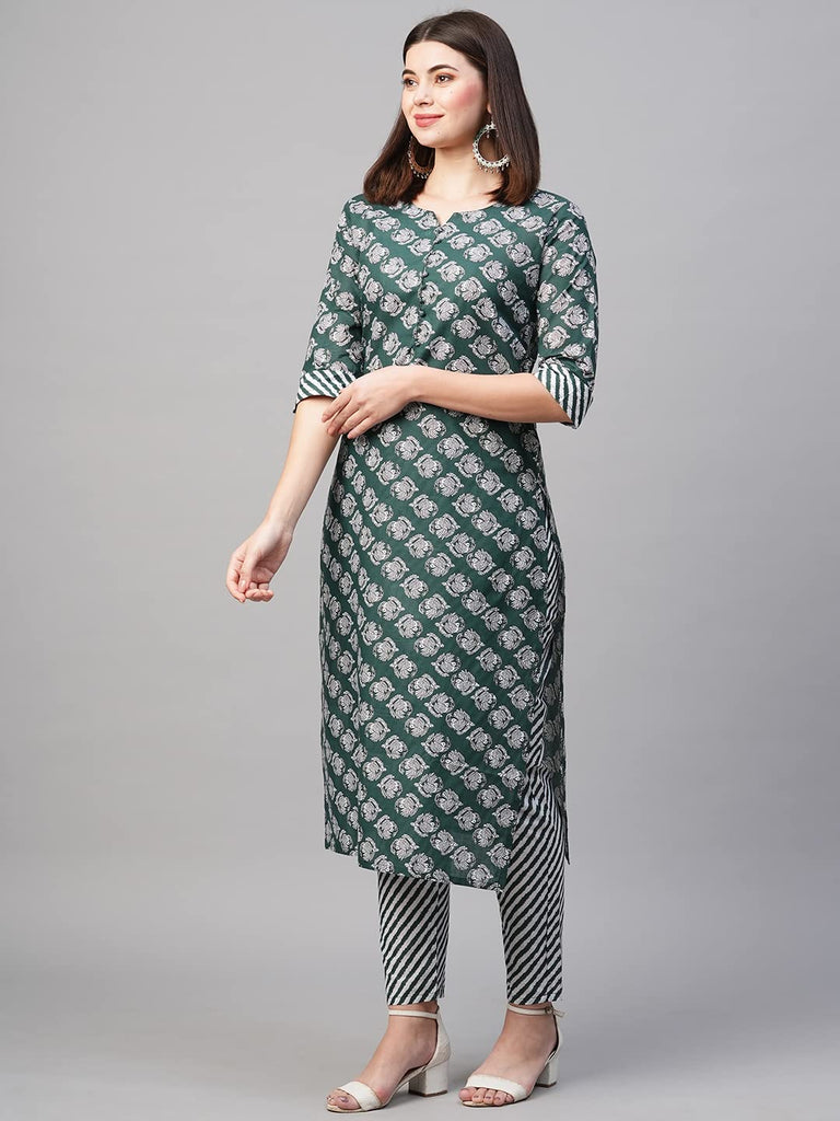 Descriptionanni Designer Women'S Cotton Blend Straight Printed Kurta With Pant (Funnu Blue New_3Xl_Blue_Xxx-Large)