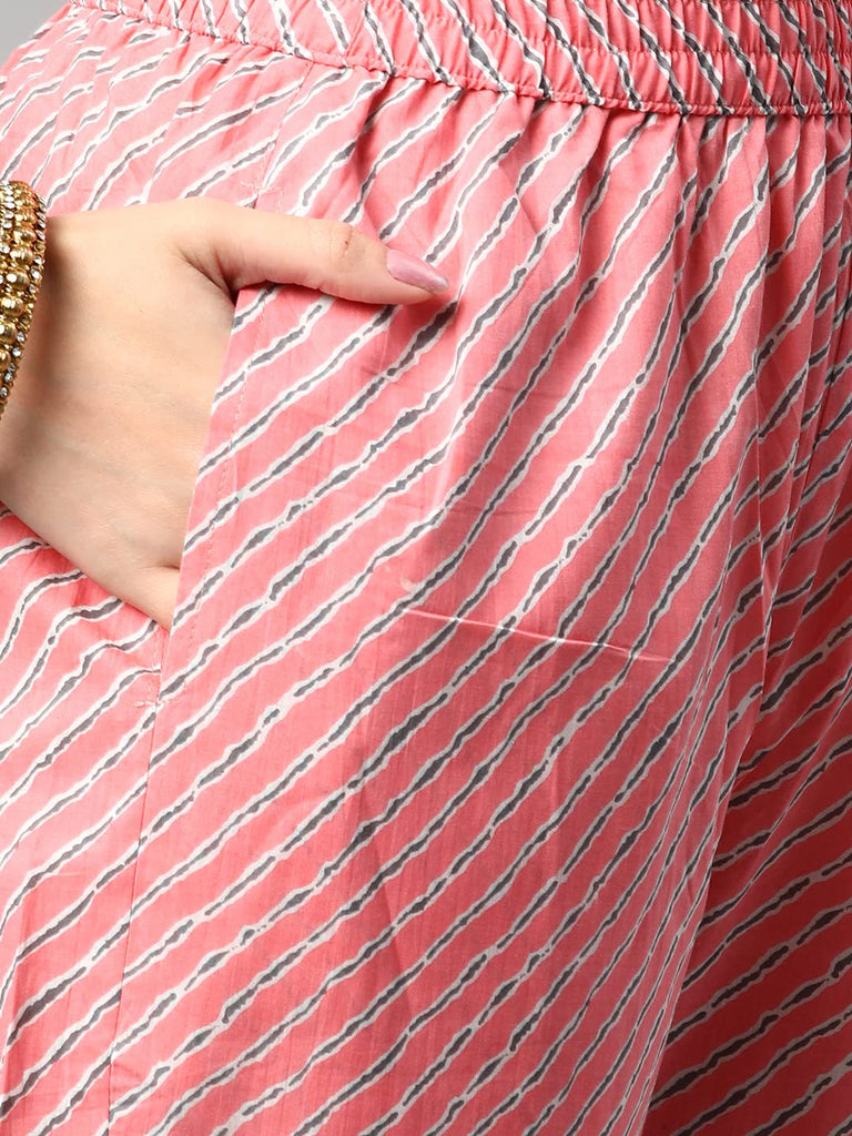 Anni Designer Women'S Cotton Blend Printed Straight Kurta With Pant (Jinki-Peach_S_Dark Blue_Small),Peach,S,Cotton Blend,Regular,Pants