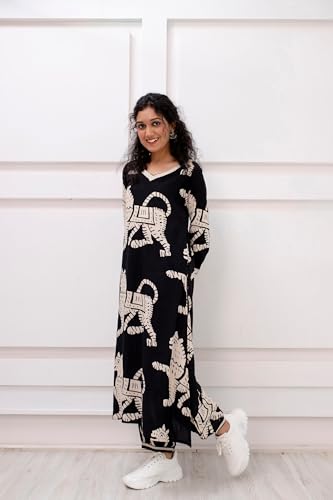 Anni Designer Women'S Cotton Blend Printed Straight Kurta With Pant (Lanka Black_2306 X-Large),Black,XL,Cotton Blend,Regular,