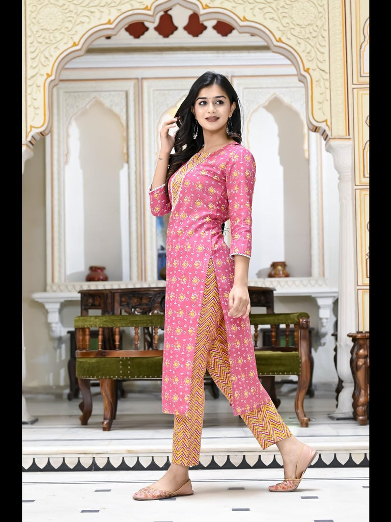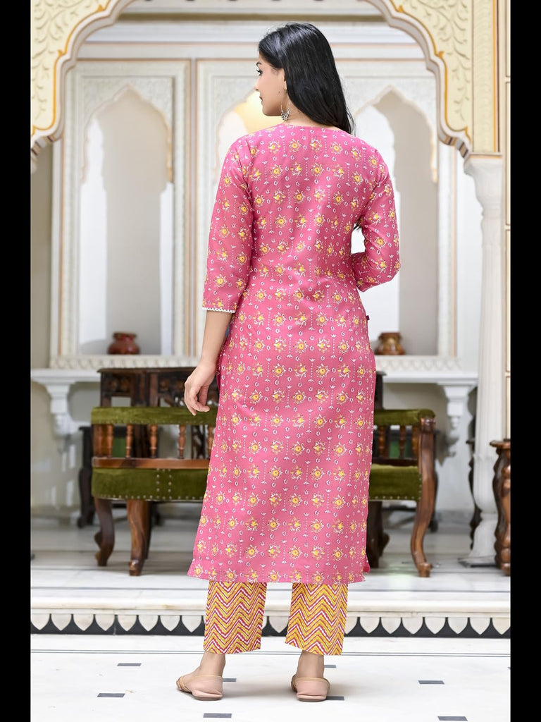 Anni Designer Women'S Cotton Blend Printed Straight Kurta With Pant (Mikaa Pink-Ner_5Xl_Pink_Xxxxx-Large),Pink,5XL,Cotton Blend,Regular,