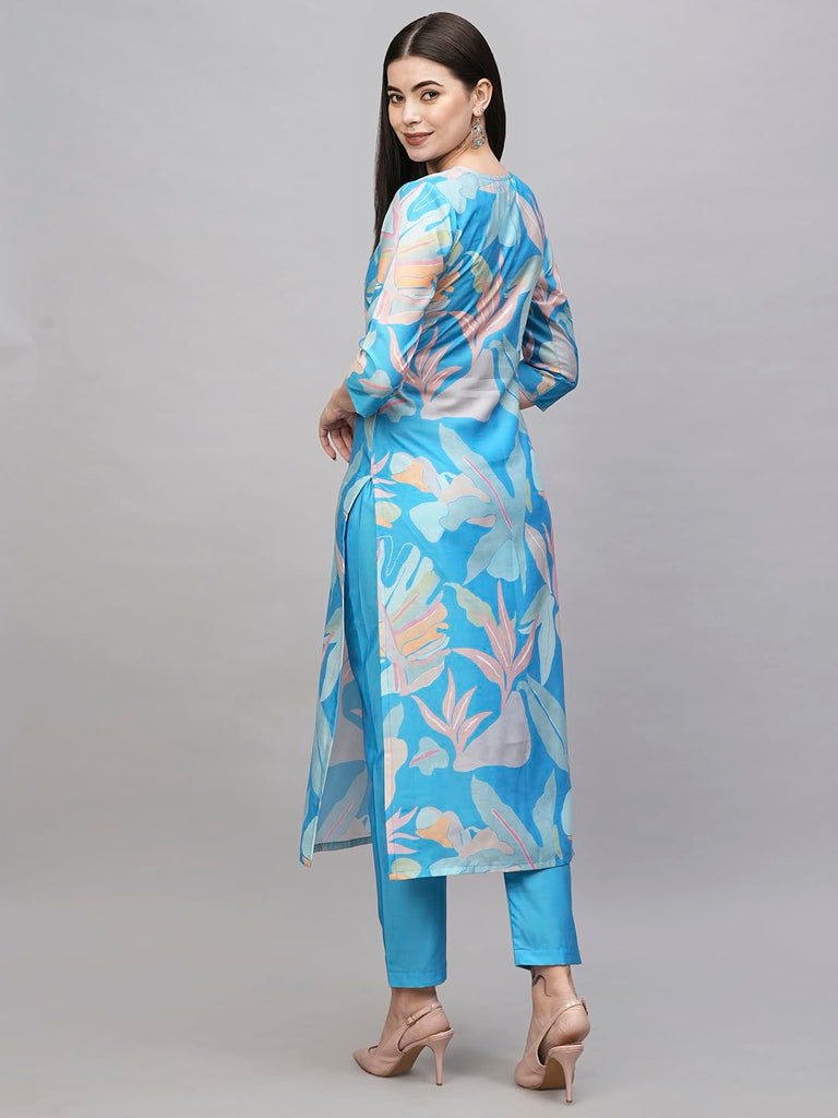 Anni Designer Women'S Cotton Blend Printed Straight Kurta With Pant Pack Of 2 (Anaar Beige-Jonaki Blue_Xl_Multi_X-Large),Multicolour,XL,,,