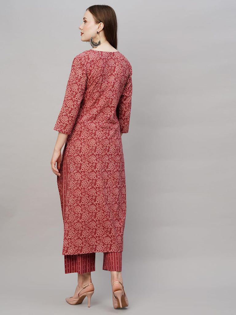 Descriptionanni Designer Women'S Cotton Blend Printed Straight Kurta With Pant (Pina Peach_Xl_Peach_X-Large)