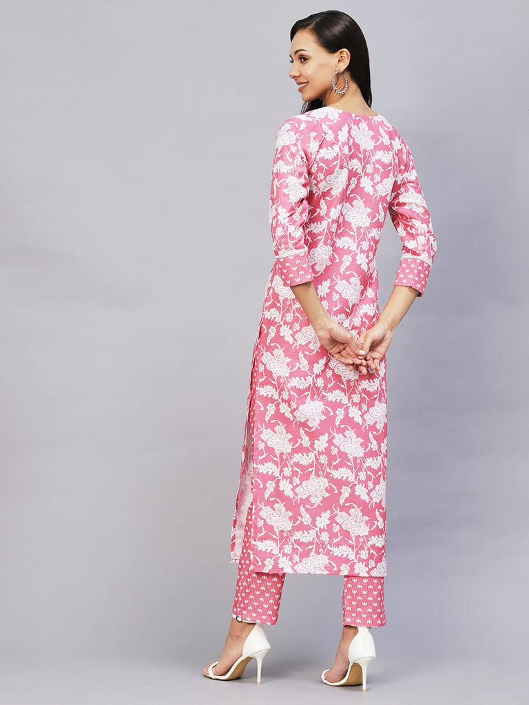 Anni Designer Women'S Cotton Blend Printed Straight Kurta With Pant (Pustak Pink-Nw_L_Pink_Large),Pink,L,Cotton Blend,Regular,kurta