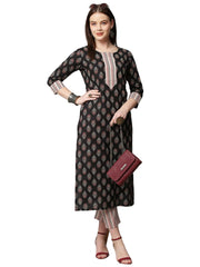 Anni Designer Women'S Cotton Blend Printed Straight Kurta With Pant (Sarva-Black_S_Dark Blue_Small),Black,S,Cotton Blend,Regular,kurta
