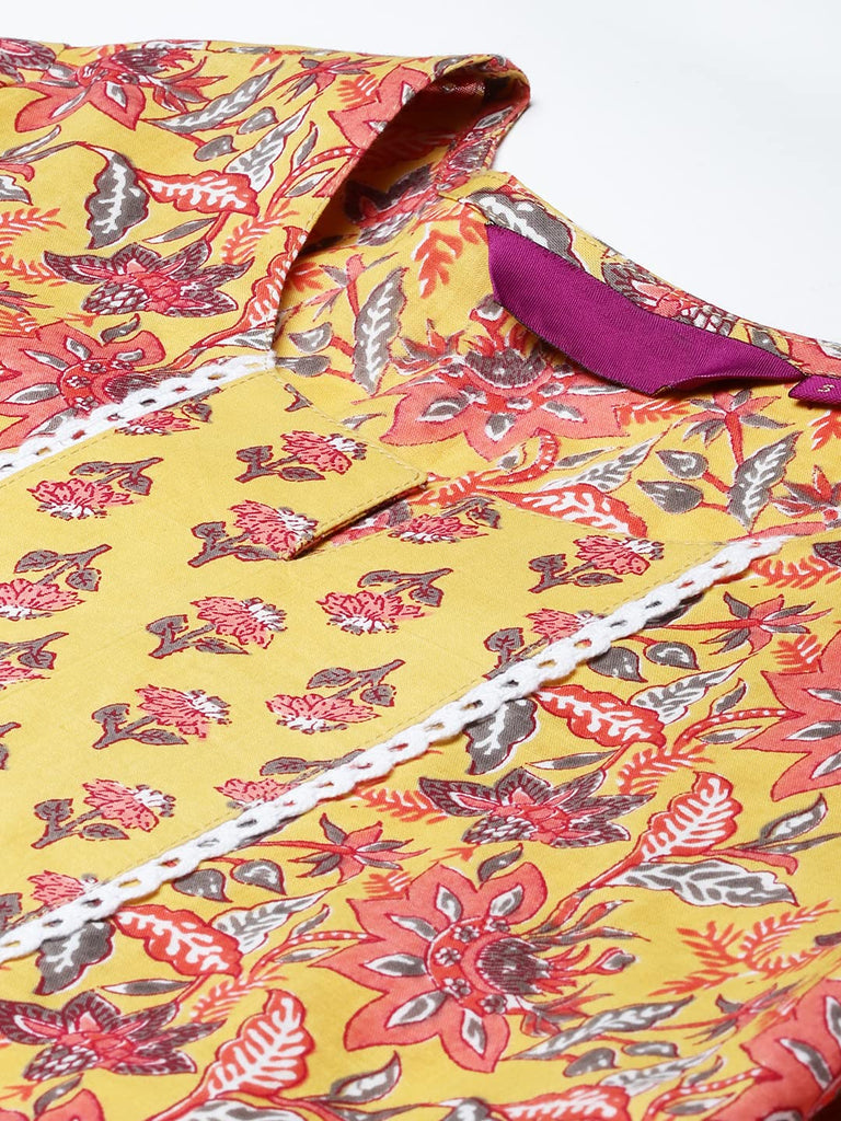 The ANNI DESIGNER Kurta is made from a cotton blend fabric, offering comfort and breathability.