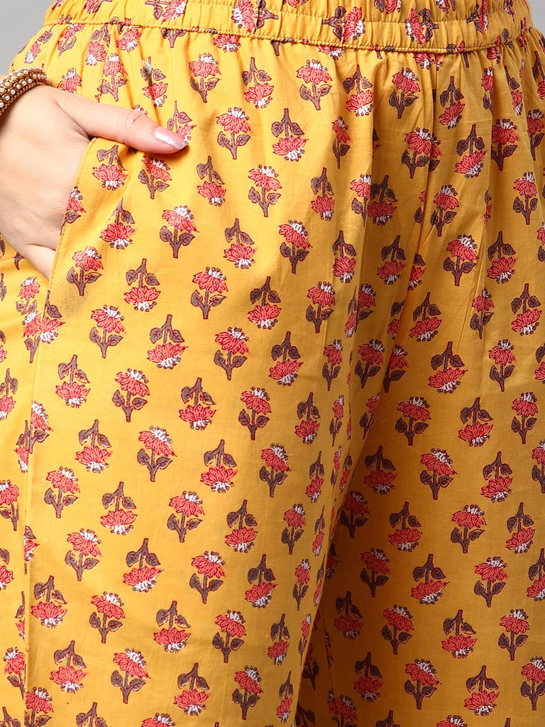 Anni Designer Women'S Cotton Blend Printed Straight Kurta With Pant (Sarva-Grey & Yellow_S_Dark Blue_Small),Grey & Yellow,S,Cotton Blend,Regular,kurta
