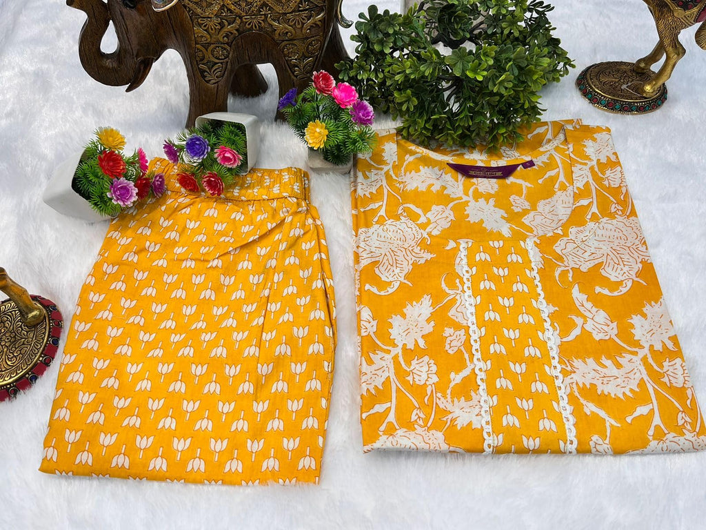 Descriptionanni Designer Women'S Cotton Blend Printed Straight Kurta With Pant (Teri Yellow-Jsw_Xl_Yellow_X-Large)