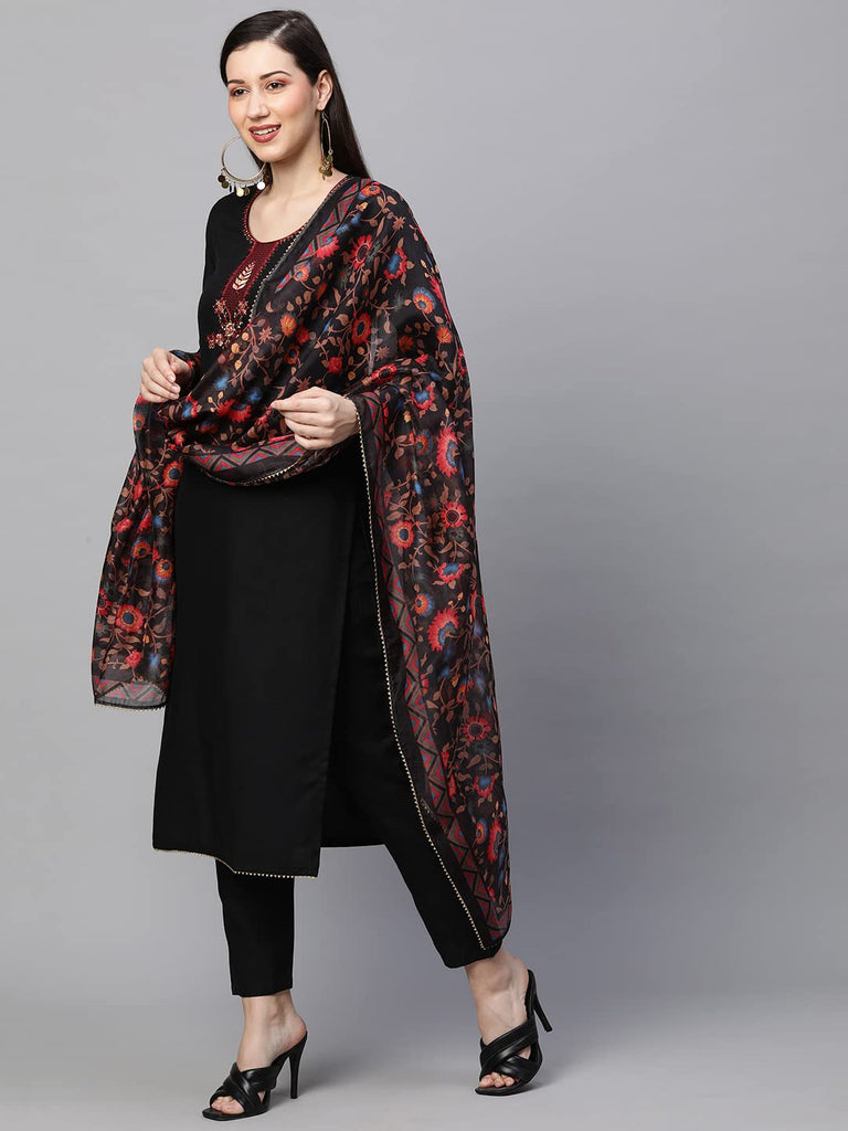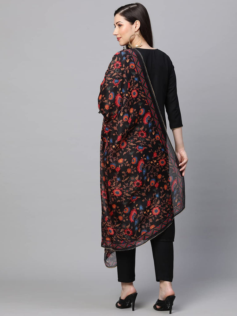 Anni Designer Women'S Cotton Blend Solid Straight Kurta With Pant & Dupatta (Authentic-Black_S_Black_Small),Black,S,Cotton Blend,Regular,1 Kurta and 1 Pant with Dupatta