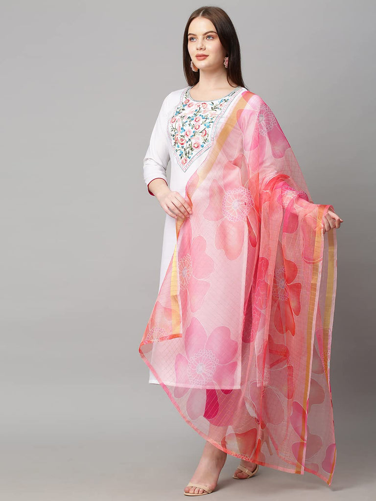 Descriptionanni Designer Women'S Cotton Blend Solid Straight Kurta With Pant & With Dupatta (Chora Wp_White_4Xl_White_Xxxx-Large)