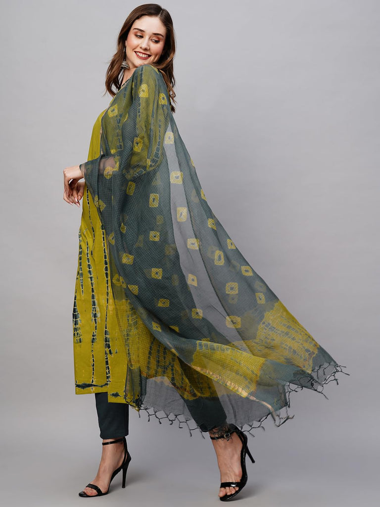 Descriptionanni Designer Women'S Cotton Blend Staright Printed Kurta With Pant & Dupatta (Bhumi Green_Xl_Green_X-Large)
