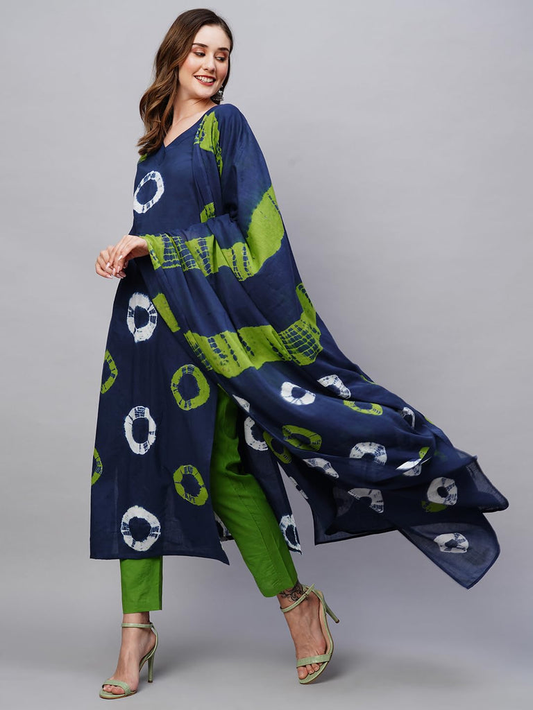 Descriptionanni Designer Women'S Cotton Blend Staright Printed Kurta With Pant & Dupatta (Sumitra Blue_M_Blue_Medium)