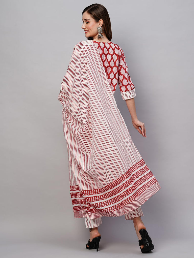 Descriptionanni Designer Women'S Cotton Blend Staright Printed Kurta With Pant & Dupatta (Vedavati Red_3Xl_Red_Xxx-Large)