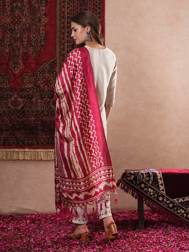 Anni Designer Women'S Cotton Blend Straight Embroidered Kurta With Pant & Dupatta (Dd Beige-Vks07_Xl_Beige_X-Large)