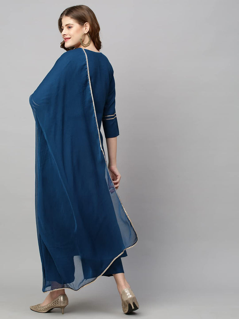 Descriptionanni Designer Women'S Cotton Blend Straight Embroidered Kurta With Pant & Dupatta (Just Cerosin_Xl_Blue_X-Large)