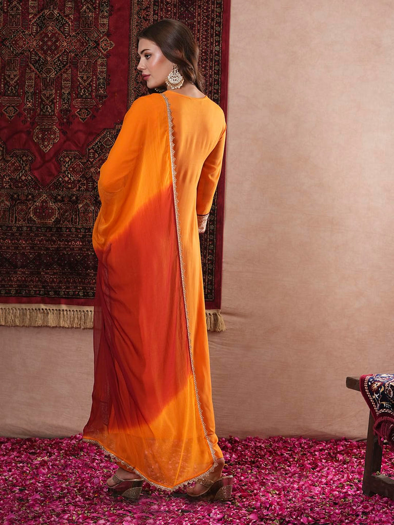 Anni Designer Women'S Cotton Blend Straight Embroidered Kurta With Pant & Dupatta (Kunnu Orange_L_Orange_Large),Orange,L,Rayon Blend,Regular,