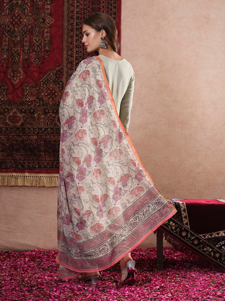 Anni Designer Women'S Cotton Blend Straight Embroidered Kurta With Pant & Dupatta (Sarthi Mehandi_M_Mehandi_Medium),Mehandi,M,Rayon Blend,Classic,