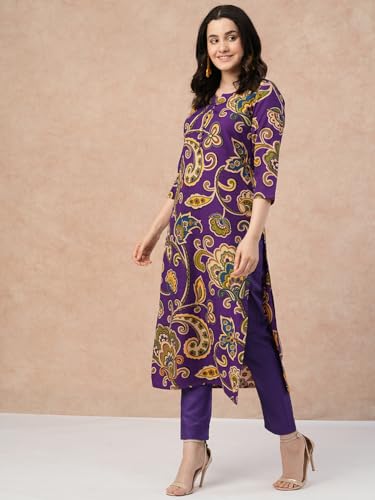 Anni Designer Women'S Cotton Blend Straight Fit Printed Kurta With Pant (Tinka Begani_M_Blue_Medium),Blue,M,Cotton Blend,Regular,1 Kurta with 1 Pant