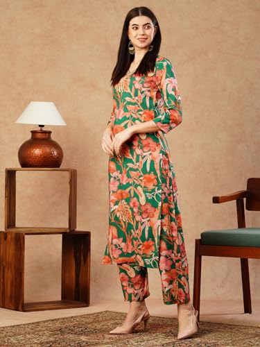 Descriptionanni Designer Women'S Cotton Blend Straight Printed Kurta With Palazzo (Chinki Green-Nw_L_Green_Large)