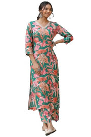 Anni Designer Women'S Cotton Blend Straight Printed Kurta With Palazzo (Chinki Green_4Xl_Green_Xxxx-Large),Green,4XL,Rayon Blend,Regular,
