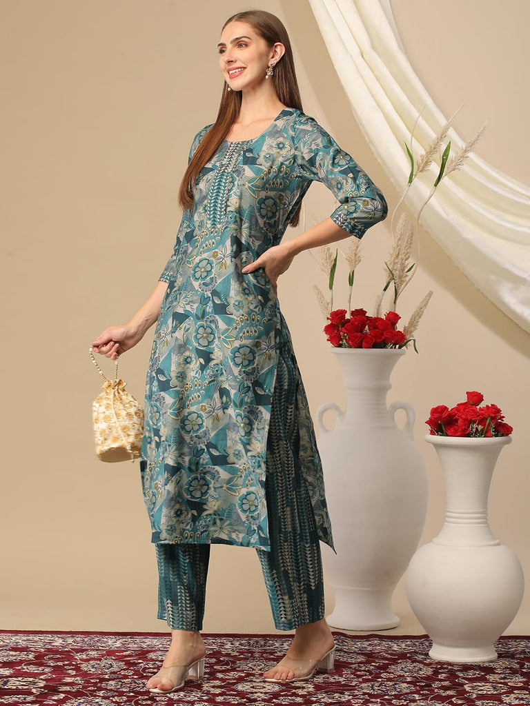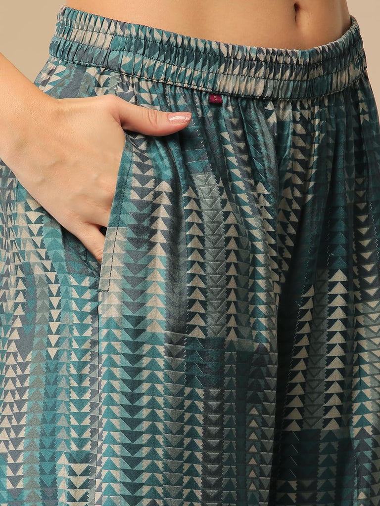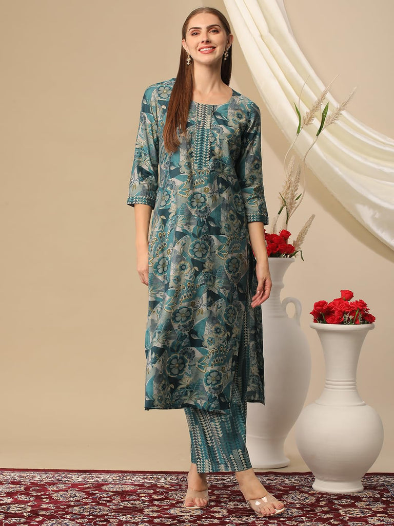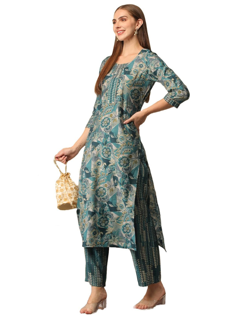 Anni Designer Women'S Cotton Blend Straight Printed Kurta With Palazzo (Kanjirang Blue-Nh_M_Blue_Medium)