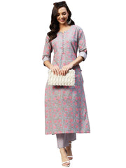 Anni Designer Women'S Cotton Blend Straight Printed Kurta With Palazzo (Lochna Grey_Xl_ Grey_X-Large),Grey,XL,Cotton,straight,Kurta with Pant