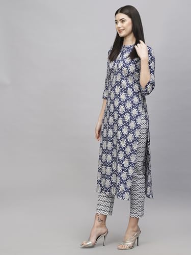 Descriptionanni Designer Women'S Cotton Blend Straight Printed Kurta With Pant (Babita Blue_S_Blue_Small)