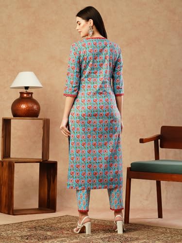 Descriptionanni Designer Women'S Cotton Blend Straight Printed Kurta With Pant (Balajyoti Blue-Nw_S_Blue_Small)