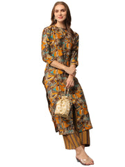 Anni Designer Women'S Cotton Blend Straight Printed Kurta With Pant (Bbcom Yellow-Nj_M_Yellow_Medium),Yellow,M,Cotton Blend,Regular,