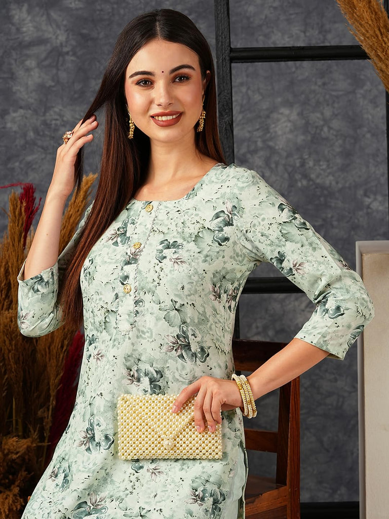 Anni Designer Women'S Cotton Blend Straight Printed Kurta With Pant (Bhutam Green_S_Green_Small)