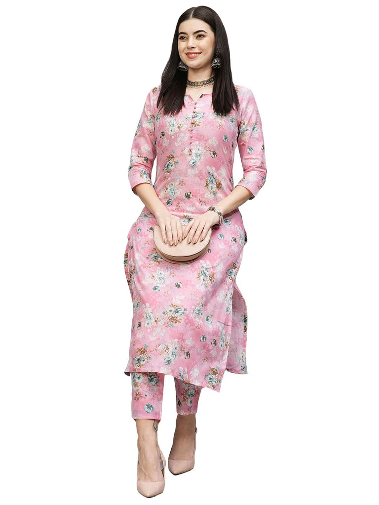Descriptionanni Designer Women'S Cotton Blend Straight Printed Kurta With Pant (Buddi Pink_L_Pink_Large)