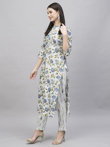 Anni Designer Women'S Cotton Blend Straight Printed Kurta With Pant (Dafiya Green_L_Green_Large),Green,L,Cotton Blend,Dafiya_1426,Kurta