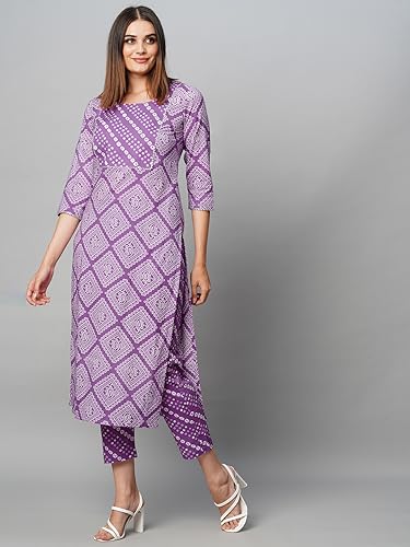 Anni Designer Women'S Cotton Blend Straight Printed Kurta With Pant (Dali Blue_M_Blue_Medium),Blue,M,Cotton Blend,Regular,Kurta