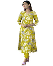 Anni Designer Women'S Cotton Blend Straight Printed Kurta With Pant (Dhun Lemon_S_Lemon_Small),Lemon,S,Rayon Blend,Regular,