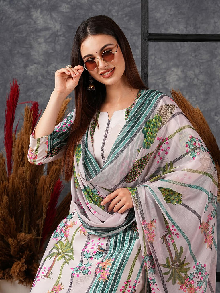 Anni Designer Women'S Cotton Blend Straight Printed Kurta With Pant & Dupatta (Darur Green-Nw_S_Green_Small),Green,S,,,