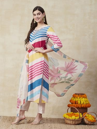 Descriptionanni Designer Women'S Cotton Blend Straight Printed Kurta With Pant & Dupatta (Dhimi Pink-Nre_L_Pink_Large)