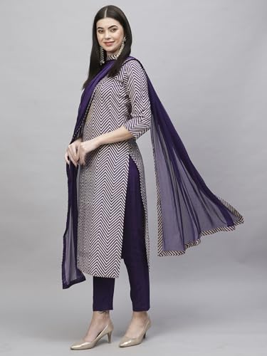 Anni Designer Women'S Cotton Blend Straight Printed Kurta With Pant & Dupatta (Dmpl Begani-Nw_M_Purple_Medium),Purple,M,Cotton Blend,Straight,Kurta, Scarf