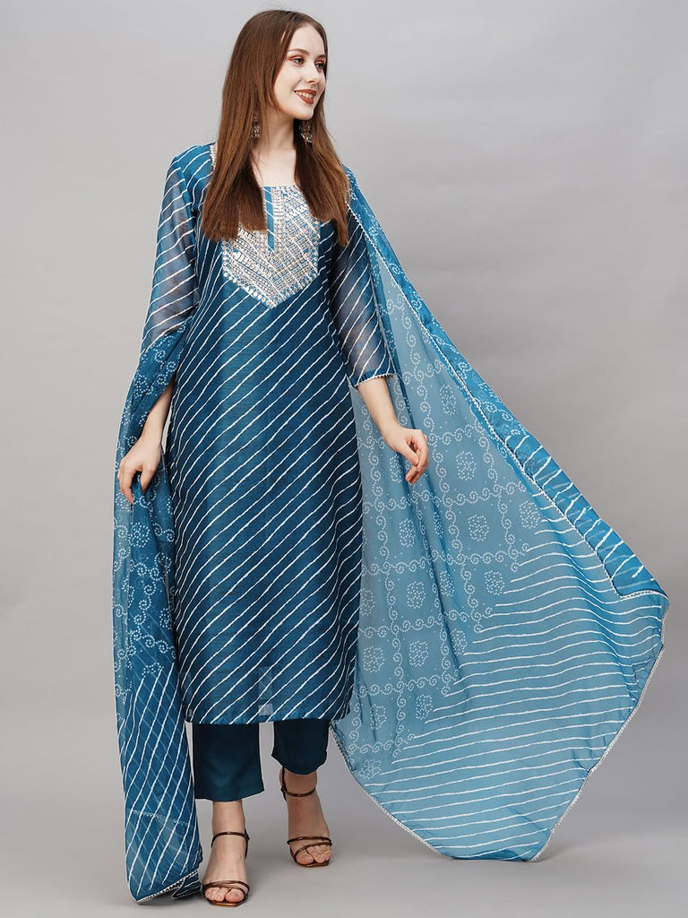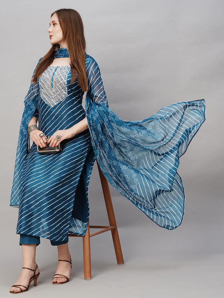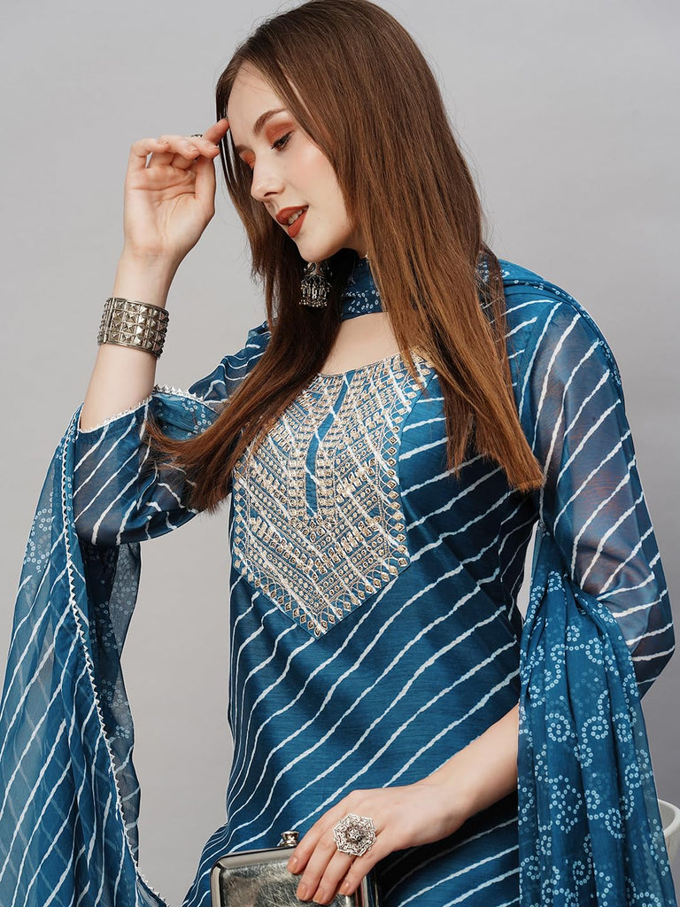 Anni Designer Women'S Cotton Blend Straight Printed Kurta With Pant & Dupatta (Doremi Kerocin-Nw_S_Kerocin_Small)