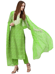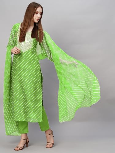 Anni Designer Women'S Cotton Blend Straight Printed Kurta With Pant & Dupatta (Doremi Parrot_Xl_Light Green_X-Large),Light Green,XL,Cotton Blend,Regular,