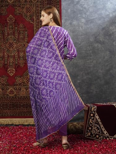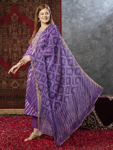 Anni Designer Women'S Cotton Blend Straight Printed Kurta With Pant & Dupatta (Doremi Purple-Jl_4Xl_Purple_Xxxx-Large),Purple,4XL,Cotton Blend,Regular,